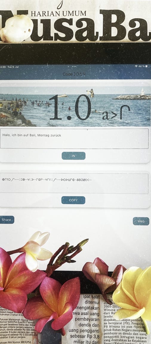 Alles, was Sie schreiben, verschwindet wieder unmittelbar, nichts wird gespeichert. Haben Sie eine Nachricht bekommen, können Sie diese weiter unten in Klartext umwandeln. PS: Für Leute ohne App ein # eingeben.